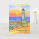 Une fête des mères pour une carte de voeux spéciale de maman avec un tableau aquarelle d'un phare dans un lever de soleil coloré du matin avec lumière douce sur les bâtiments et le feuillage alors que le soleil commence à monter. Vous pouvez modifier le texte et la couleur intérieure pour répondre à vos besoins.