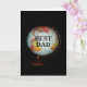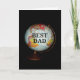 Un globe antique aux couleurs vives, photographié contre un arrière - plan noir, fait l'objet de ma "Bonne Fête des pères au meilleur papa sur terre !" Carte fête des pères. "Meilleur papa" en texte noir sur la face du globe complète l'image avant de la carte.