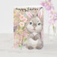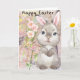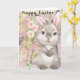 Bonne carte de voeux de Pâques pour une petite-fille avec adorable lapin et arrière - plan de fleurs de printemps.