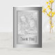 La carte de vœux d'anniversaire de mariage Bordure argent 25 ans comporte un fond argenté entouré d'une bordure argentée métallique tout aussi brillante et un espace à l'avant pour ajouter votre photo. Élégante carte de remerciement aux invités qui ont assisté à la célébration de l'anniversaire de mariage d'argent [25e anniversaire de mariage]. © Morning 6