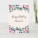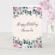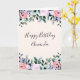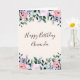 Carte de vœux avec un joli motif floral réalisé à l'aquarelle. Fleurs de jardin roses, violettes et vertes.