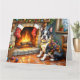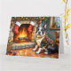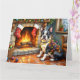 A delightful Christmas artwork featuring a charming Boston Terrier sitting beside a glowing fireplace decorated with stockings and twinkling Christmas lights. This cozy holiday scene captures the Boston Terrier’s playful personality and loving spirit, making it perfect for dog enthusiasts and festive home decor. Bring warmth, joy, and a touch of holiday cheer to your space with this adorable Christmas-inspired art piece.