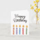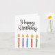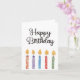 C'est une carte de voeux d'anniversaire mignonne et colorée avec texte de script de calligraphie Joyeux anniversaire et nom personnalisé. Il a des bougies d'anniversaire lumineuses et colorées.