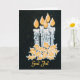 Une carte de Noël chic avec la salutation dans le Suédois et cinq bougies avec le houx, peint à la main en peinture d'or et d'argent sur un arrière - plan noir étoilé.