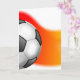 Illustration colorée d'un ballon de football volant à travers l'air avec une trace de chaleur ou de flammes de feu laissée dans son sillage. Image disponible sur divers cadeaux et produits.