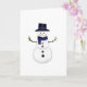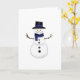 Répandez un peu de joie hivernale avec ce design fantaisiste de bonhomme de neige ! Représentant un bonhomme de neige joyeux portant un haut-de-forme noir avec un bandeau bleu foncé qui correspond à son écharpe. Parfait pour envoyer des vœux chaleureux, des salutations saisonnières ou simplement un sourire - intérieur vierge pour que vous puissiez écrire votre propre message sincère.