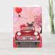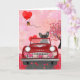 Carte Bouledogue français voiture avec coeurs Saint-Vale