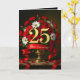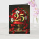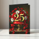 Le recto de la carte est orné d'un arrière - plan sombre et dramatique qui présente un bouquet somptueux de marguerites rouges et blanches dans un vase doré classique. Un "25" en or métallique est encadré d'une bannière rouge rubis portant le slogan "Joyeux anniversaire !". L'intérieur est une toile noire solide sophistiquée avec un exemple de texte en or élégant script. Fondamentalement, tout le texte (sur la bannière avant et à l'intérieur de la carte) est entièrement modifiable. Personnalisez facilement le message et ajustez la police, la couleur et la taille pour créer un hommage d'anniversaire en argent vraiment unique. Cette carte offre une plate-forme riche et élégante pour offrir vos félicitations personnalisées.