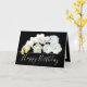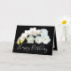 Magnifique bouquet d'orchidées blanches, de roses blanches et d'une pivoine blanche contre un arrière - plan de couleur noire. Le texte de salutation d'anniversaire utilise une police de typographie de script attrayante. Les fleurs recouvrent l'avant de cette carte qui peut être utilisée comme carte de remerciements, carte d'anniversaire ou toute autre carte de votre choix. Personnalisez-le avec votre texte et/ou vos images pour en faire un unique !