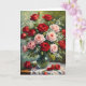 Un tableau impressionniste de roses roses roses et rouges avec le souffle d'un bébé blanc dans un vase clair, sur une table couverte de tissu, crée une carte de Saint Valentin romantique à merveille.