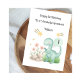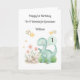 This birthday card is suitable for a grandson or son's first, 2nd or 3rd birthday. The design includes the number 1 (which can be changed or removed), birthday stars, watercolour grass, flowers and rocks, and a blue dinosaur with balloon.