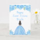 Cette carte d'anniversaire en sweet sixteen présente des fleurs florales d'un bleu éclatant de la parties scintillant et une belle princesse aux cheveux bruns et une robe élégante. C'est parfait pour une fête d'anniversaire en sweet sixteen.