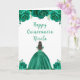 Cette carte d'anniversaire de Quinceanera présente des fleurs florales vert clair en faux parties scintillant et une belle princesse aux cheveux bruns et une robe élégante. C'est parfait pour une fête d'anniversaire de Quinceanera.
