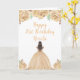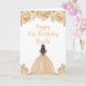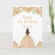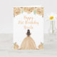 Cette carte d'anniversaire présente des fleurs florales à la crème de pêche au champagne de parties scintillant imitation et une belle princesse aux cheveux bruns et une robe élégante. C'est parfait pour une fête d'anniversaire.