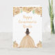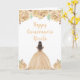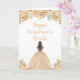 Cette carte d'anniversaire de Quinceanera présente des fleurs florales à la crème de pêche au champagne de parties scintillant faux et une belle princesse aux cheveux bruns et une robe élégante. C'est parfait pour une fête d'anniversaire de Quinceanera.