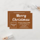 Joyeux Noël! Une des fêtes les plus célèbres de l'année. C'est aussi l'une des meilleures saisons pour annoncer votre entreprise ou pour promouvoir votre marque auprès de clients ou clients. Brown petite carte de voeux plate pour Noël que vous pouvez customiser en téléchargeant votre logo d'entreprise, en tapant votre nom d'entreprise, adresse, numéro de téléphone, e-mail et site Web. Customisez-le et utilisez-le pour accueillir vos clients ou clients ce Noël et comme matériel de marketing pour annoncer votre entreprise ou promouvoir votre marque. Vous pouvez également l'utiliser comme accessoire des matériaux d'emballage de vos produits. Carte de voeux personnalisable pour Noël que vous pouvez utiliser pour développer la sensibilisation de marque. Vous pouvez l'utiliser en décembre ou Noël en juillet. Veuillez vérifier l'apparence des côtés avant et arrière après avoir téléchargé le logo et tapé des textes. Si l'apparence vous plaît, vous pouvez passer votre commande maintenant. Si vous avez besoin de redimensionner et repositionner le logo et les textes pour les mettre sur cette carte ou sur la taille que vous choisirez, s'il vous plaît ajuster dans l'outil de conception. Vous pouvez également modifier la couleur arrière - plan, la couleur de police et le style de police dans l'outil de conception. Joyeux Noël! Je vous souhaite plus de ventes ce jour férié.