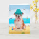 Un Bulldog anglais assis sur la plage est une idée cadeau parfaite pour quelqu'un qui aime cette race de chien.