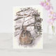 Cette carte Día del Padre présente un lapin de lapin de coton brun et doux, aux oreilles cendrées sous un pin, à la recherche d'un abri de la neige. Un lapin plus petit est à l'intérieur. Le texte peut être customisé selon vos besoins.