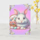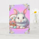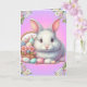 Un adorable lapin blanc de Pâques est prêt avec un panier d'oeufs pastel de Pâques et des fleurs de printemps est prêt à se cacher le matin de Pâques avec cette carte de Pâques. Restez en contact avec votre famille et vos amis avec cette carte personnalisable.
