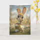 This adorable Easter greeting card features a sweet bunny wearing a colorful flower crown and a sunny yellow dress while holding a basket filled with beautifully decorated Easter eggs. Surrounded by blooming spring flowers, fluttering butterflies, and soft sunshine, the scene captures the joyful spirit of Easter and the magic of the season. A charming card perfect for sending warm Easter wishes to friends, family, or anyone who loves cute bunny art and cheerful springtime designs.