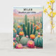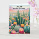 Célébrez avec style en utilisant cette carte d'anniversaire sur le thème des cactus et pleine d'humour : La légende drôle, qui commence sur le devant et se termine à l'intérieur de la carte, est « Encore une année de plus... toujours aussi piquant ! » Avec une illustration de cactus en fleurs dans un paysage désertique et son jeu de mots piquant et ludique, cette carte fait sourire les destinataires et les fait se sentir célébrés de manière amusante et légère. Parfaite pour les amoureux des plantes, les amateurs de jeux de mots et les passionnés de cactus, la carte peut être personnalisée avec le nom du destinataire en haut.