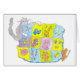 Un chat et une souris tiennent une courtepointe avec des choses qu'ils aiment.
