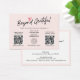 Cette carte cadeau de code QR moderne tendance avec script de calligraphie élégant est un choix parfait pour montrer votre grade à votre client. Fonctionne 2 QR code, les médias sociaux et les informations de réseau. Au verso de la carte, vous pouvez écrire plus de message à votre client ou simplement écrire vos informations professionnelles. Votre client aimera ce joli et chic certificat cadeau de code QR.