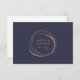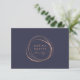 Carte cadeau chic affiche votre nom d'entreprise ou votre choix de texte personnalisé à l'intérieur d'un élément cercle abstrait en feuille d'or rose sur un arrière - plan bleu nuit riche. Ajoutez le libellé de votre certificat-cadeau et les coordonnées de votre entreprise au verso, surmontés d'une paire de cils et de sourcils assortis. Un choix moderne et élégant pour les salons, les maquilleurs, les spas ou toute entreprise.