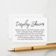 Si vous organisez une fête pour une future mariée avec un thème "pas d'emballage de cadeau", cette simple carte pourrait être le choix idéal pour vous. En utilisant une police d'écriture manuscrite moderne et audacieuse, j'ai d'abord ajouté un en-tête qui indique "Fête de présentation" sur le devant, et "Cadeau offert avec amour de :" pour le côté étiquette de cadeau. Un champ de modèle a été configuré pour offrir des instructions aux invités qui n'emballent pas leur cadeau ; n'hésitez pas à modifier la formulation si nécessaire. Toutes les polices et les couleurs peuvent être modifiées comme vous le souhaitez.