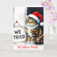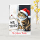 La carte personnalisable parfaite pour les familles qui embrassent le chaos ! Cette drôle de carte de vœux pliée présente un chat à l'aquarelle maladroit portant un minuscule chapeau de Père Noël et un panneau modifiable qui dit : « On a essayé ! ». Comprend un grand modèle de photo personnalisé au dos pour télécharger votre propre photo de famille maladroite. Toutes les zones de photos, les champs de texte et le message intérieur sont des objets de modèle entièrement modifiables. Idéal pour ceux qui recherchent de l'humour sur les animaux de compagnie, des cartes photo drôles ou des annonces de pulls moches qui permettent une personnalisation complète de la blague et des signatures.