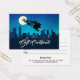 Illustration père Noël Sleigh : Une balade nocturne au-dessus de l'horizon d'une ville avec le ciel nocturne et la lune brillante et les étoiles dans l'arrière - plan.