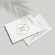 Carte cadeau chic affiche votre nom d'entreprise ou votre choix de texte personnalisé à l'intérieur d'un élément cercle abstrait de feuille d'or faux sur un arrière - plan blanc immaculé. Ajoutez le libellé de votre certificat-cadeau et les coordonnées de votre entreprise au verso, surmontés d'une paire de cils et de sourcils assortis. Un choix moderne et élégant pour les salons, les maquilleurs, les spas ou toute entreprise.