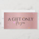 Présentant notre carte cadeau polyvalente, un complément parfait pour renforcer le positionnement de marque de votre entreprise d'extension de cils, services cosmétiques, maquilleur, coiffeur et spa à ongles. Customisez cette carte avec une touche d'élégance, y compris votre logo et les détails de votre entreprise. Qu'il s'agisse d'une occasion spéciale ou d'un régal, cette Carte Cadeau Certificat offre une expérience délicieuse pour les amateurs de beauté, renforçant l'identité de marque de votre entreprise et renforçant sa présence sur le marché.