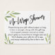 Si vous avez une douche d'affichage sans cadeau pour une future mariée, cette carte élégante pourrait être le choix pour vous. En utilisant une police de script manuscrite moderne, j'ai d'abord ajouté un graphique d'en-tête qui dit "No-Wrap Shower" sur le devant, et "To" et "From" pour le côté de la balise cadeau. Les bords ont été agrémentés de jolis motifs d'aquarelle verte de feuilles d'herbes. Un champ de modèle a été mis en place pour donner des instructions aux clients qui n'enveloppent pas leur cadeau. N'hésitez pas à modifier le libellé si nécessaire. La police sans-serif utilisée pour les instructions peut être modifiée à votre gré. // Conçu par Melody Watson pour Paper Muserie.