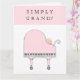 Carte créative pour bébé fille pour mère, père ou nouveaux parents avec un design sur le thème de la musique de nouveau-né et un piano à queue rose.