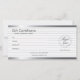 certificat cadeau logo moderne avec ce luxueux flocons d'argent étincelant et argent sur arrière - plan blanc,