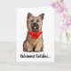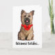 Carte Cairn Terrier Rouquin portant un nœud de Noël