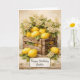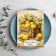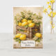 Une caisse en bois rustique remplie de citrons jaunes vifs et de délicates fleurs blanches. Cette illustration de style vintage combine le charme de la ferme avec des détails botaniques doux, créant une œuvre d'art thématique cuisine fraîche et invitante.
