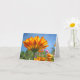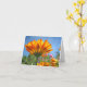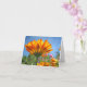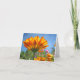 Cette carte de note a une vue insolite : regarder le ciel à travers une fleur de calendula dorée.