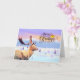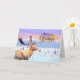 Cette carte "Joyeux Noël" présente un paysage avec des arbres et un renne en polygone.