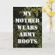 Une carte du jour de mère pour une maman militaire. Comporte une feuille de fractale/un camouflage bruns et verts motif d'aiguille approprié aux forêts coniféres ou à feuilles caduques. Le texte personnalisable sur la crique lit "MA MÈRE PORTE DES BOTTES d'ARMÉE." L'intérieur personnalisable des textes lit "le JOUR de MÈRE HEUREUX !"