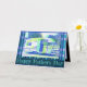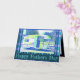 Carte de Fête des Pères de camping-car vintage amusante et colorée, dans des beaux bleus et verts, fera sourire votre papa. Le message prédéfini à l'intérieur est facilement modifiable selon vos préférences. Il y a également du texte au dos, y compris la date. Que votre père soit un campeur ou qu'il aime simplement la nostalgie, il va sûrement adorer cette carte unique.