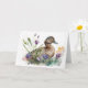 Aquarelle canard dans les fleurs pour l'anniversaire. Le texte intérieur est modifiable.