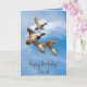 Canards colverts volant sur le ciel bleu avec nuages et nom personnalisé pour l'anniversaire. Tout le texte est modifiable.