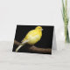canari jaune perché sur une branche avec arrière - plan noir, à l'intérieur de la carte laissé vide pour votre message personnel