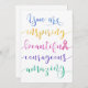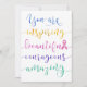 Rappelez à quelqu'un qui lutte contre le cancer du sein de se souvenir de qui elle est avec ce design de typographie de style calligraphique unique, présentant ce message dans un style aquarelle coloré : "Vous êtes inspirante, belle, courageuse, incroyable." Le "L" dans le mot belle est un ruban rose de sensibilisation au cancer du sein.