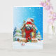 Carte Caniche dans la neige avec des cadeaux de Noël