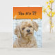 Mignonne poodle brun avec marguerites sur fauteuil en osier pour 7ème anniversaire, Texte peut être changé pour n'importe quel âge anniversaire.
