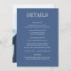 CAPE COD Bleu côtier Moderne minimaliste, détails mariages fiche modèle boîtier. Caractéristiques, espace modèle photo simple à l'arrière. Conçu pour se coordonner avec la superposition d'invitation vellum.