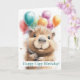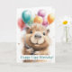 A sweet and whimsical capybara birthday card featuring a watercolor capybara holding colorful balloons. Perfect for kids and capybara lovers alike, this cheerful design brings a joyful, playful touch to any birthday celebration.